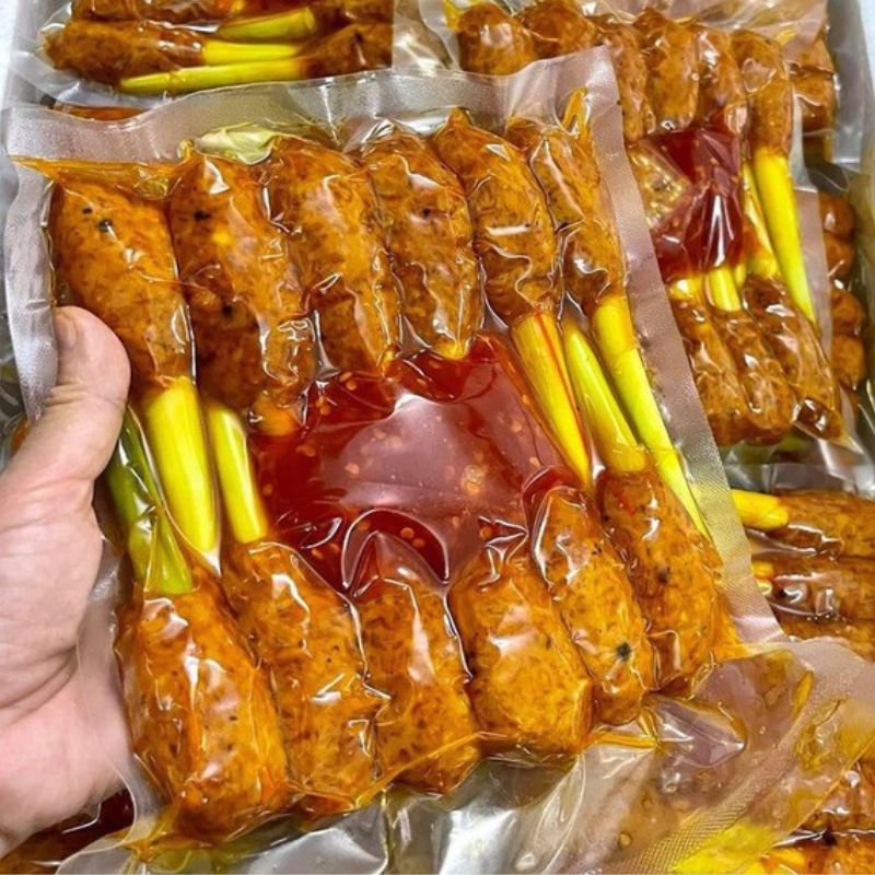 Sản phẩm Nem Bò Nướng Sả là một lựa chọn tiện lợi và ngon miệng cho những người yêu thích món ăn truyền thống của Việt Nam nhưng muốn tiết kiệm thời gian và công sức trong việc chế biến. Đây là một sự kết hợp hoàn hảo giữa nguyên liệu tươi ngon và công nghệ hút chân không để bảo quản và tạo ra một sản phẩm dễ dàng sử dụng.